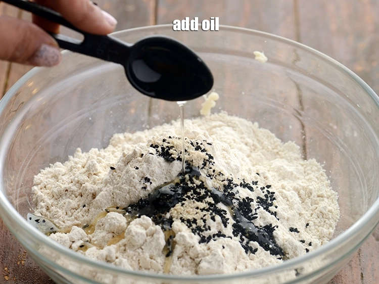 Grease the rolling board lightly with the oil. This will prevent the urad dal ki poori from sticking to the chakla belan.
