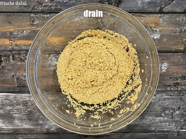पानी में कोदरी को उंगलियों से रगड़कर गंदगी हटा दें।