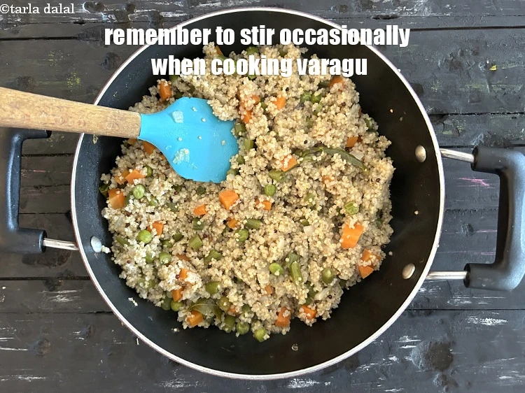 - भुना हुआ वरागु , नमक और 2 कप पानी डालें। अच्छी तरह मिलाएं, ढककर मध्यम आंच पर 10 मिनट तक पकाएं। फिर वरागु के पकने तक 5 से 7 मिनट तक धीमी आंच पर पकाएं, यदि आवश्यक हो तो और पानी मिलाएं।