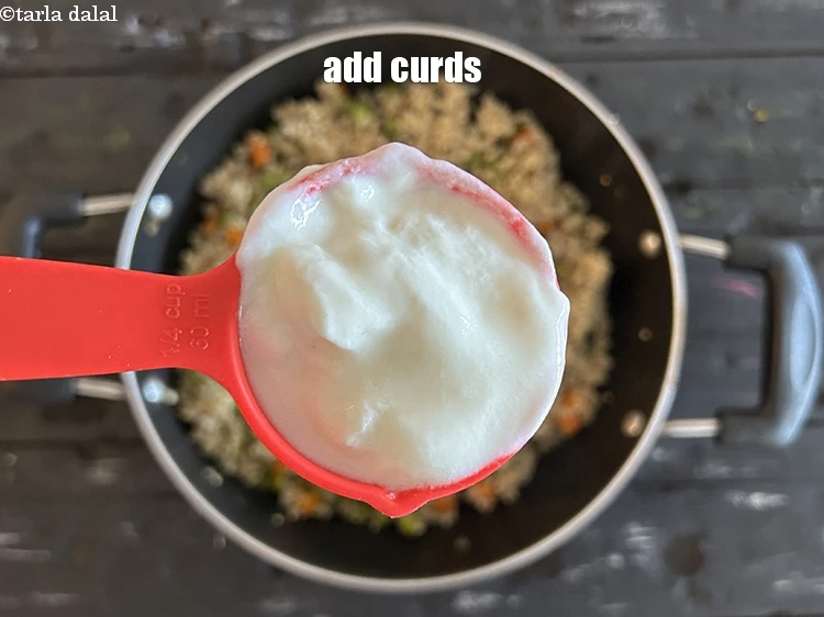१/४ टी-स्पून लो फैट दही , फेंटा हुआ डालें ।