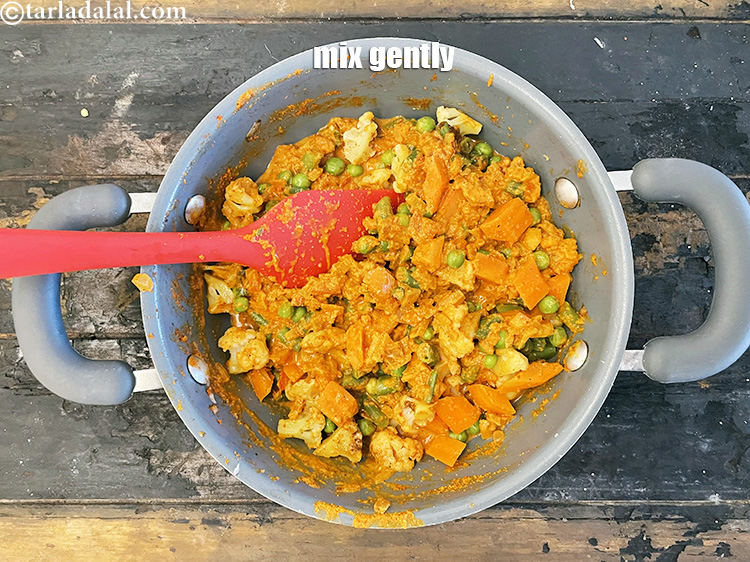 Mix gently and cook on a medium flame for 2 minutes, while stirirng occasionally.